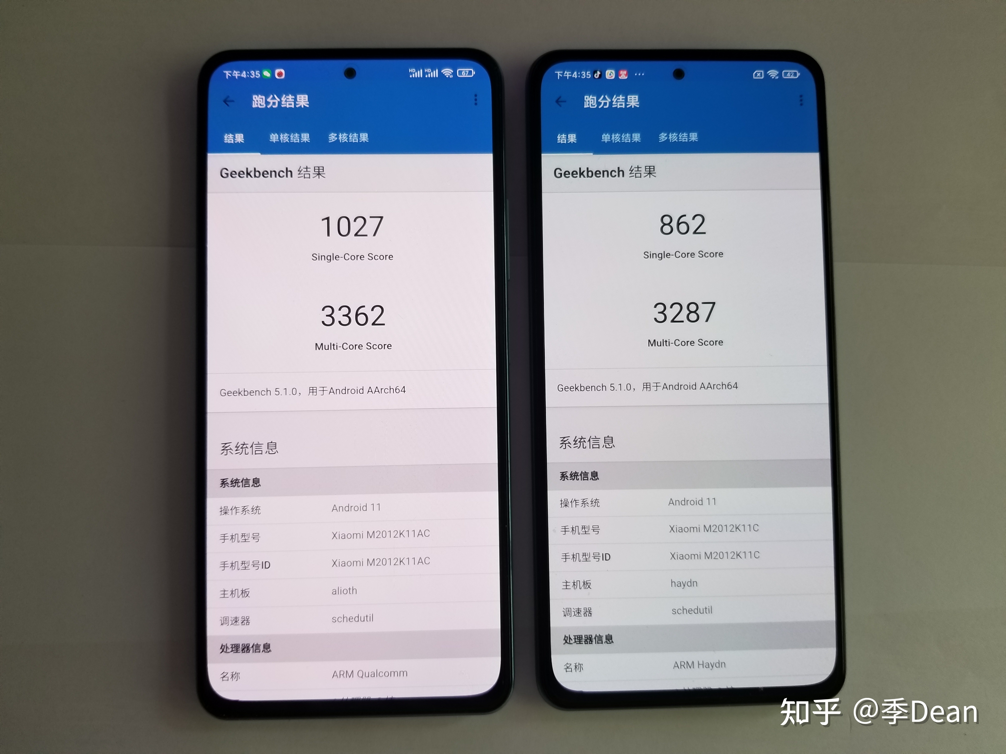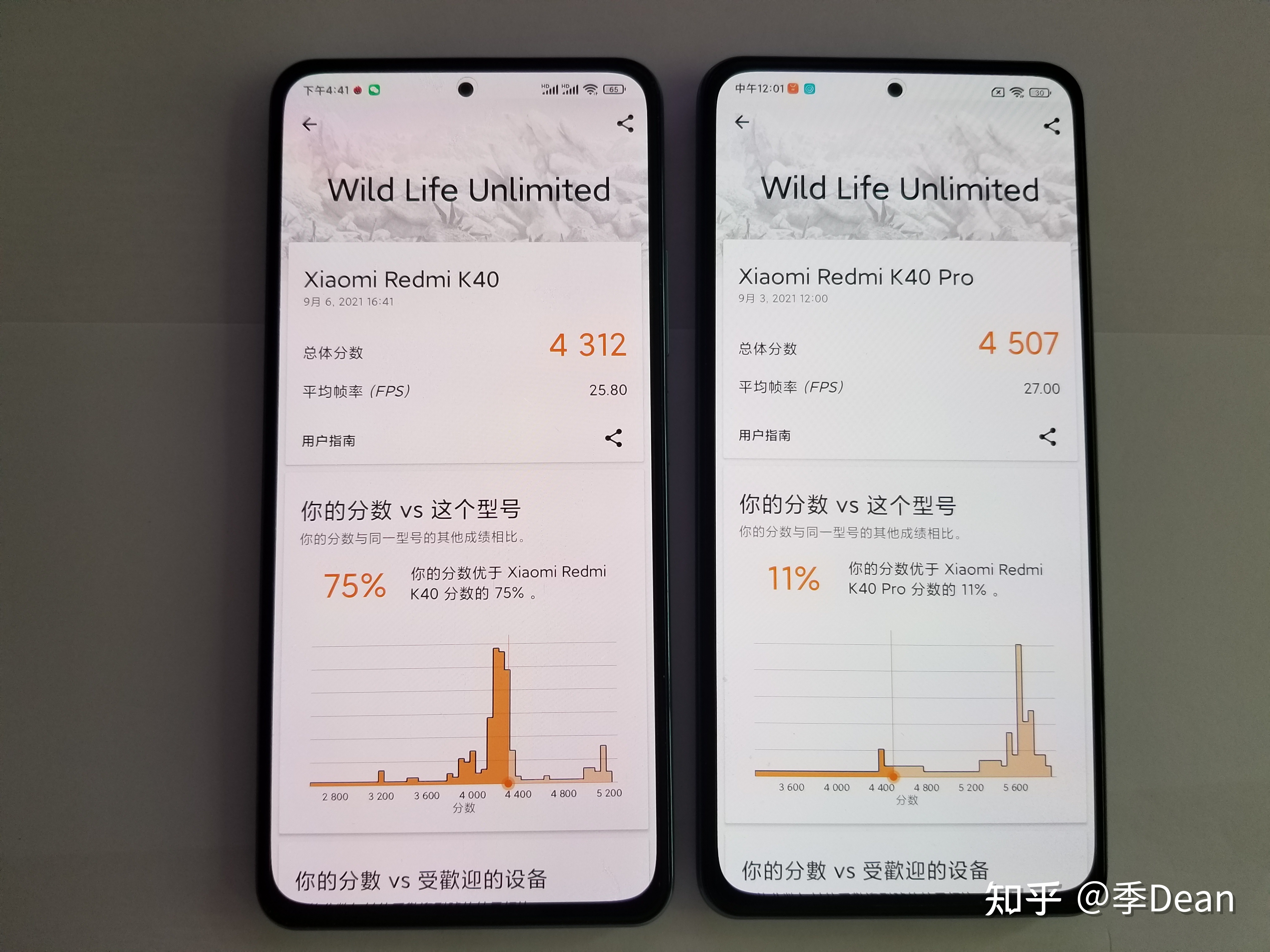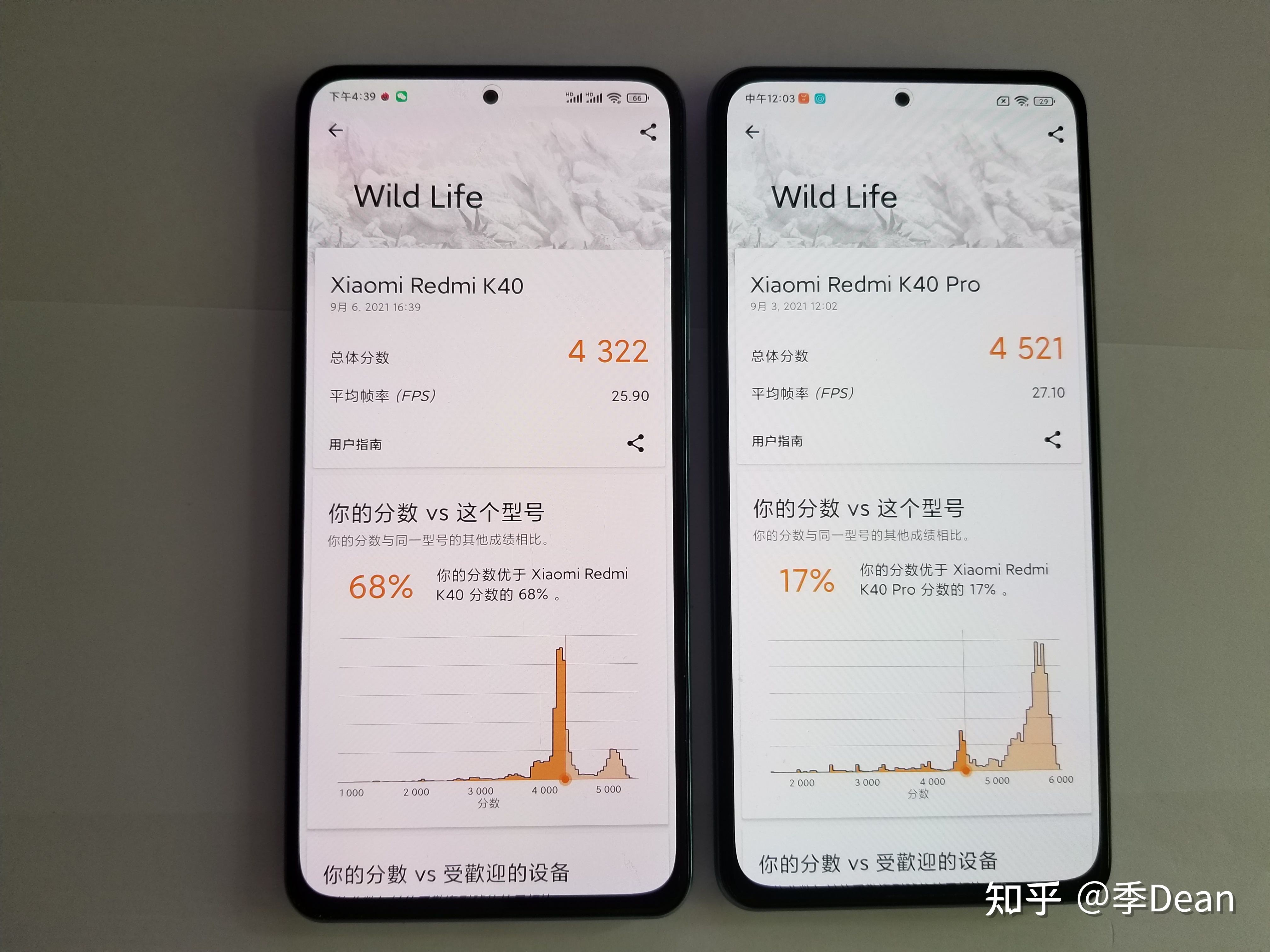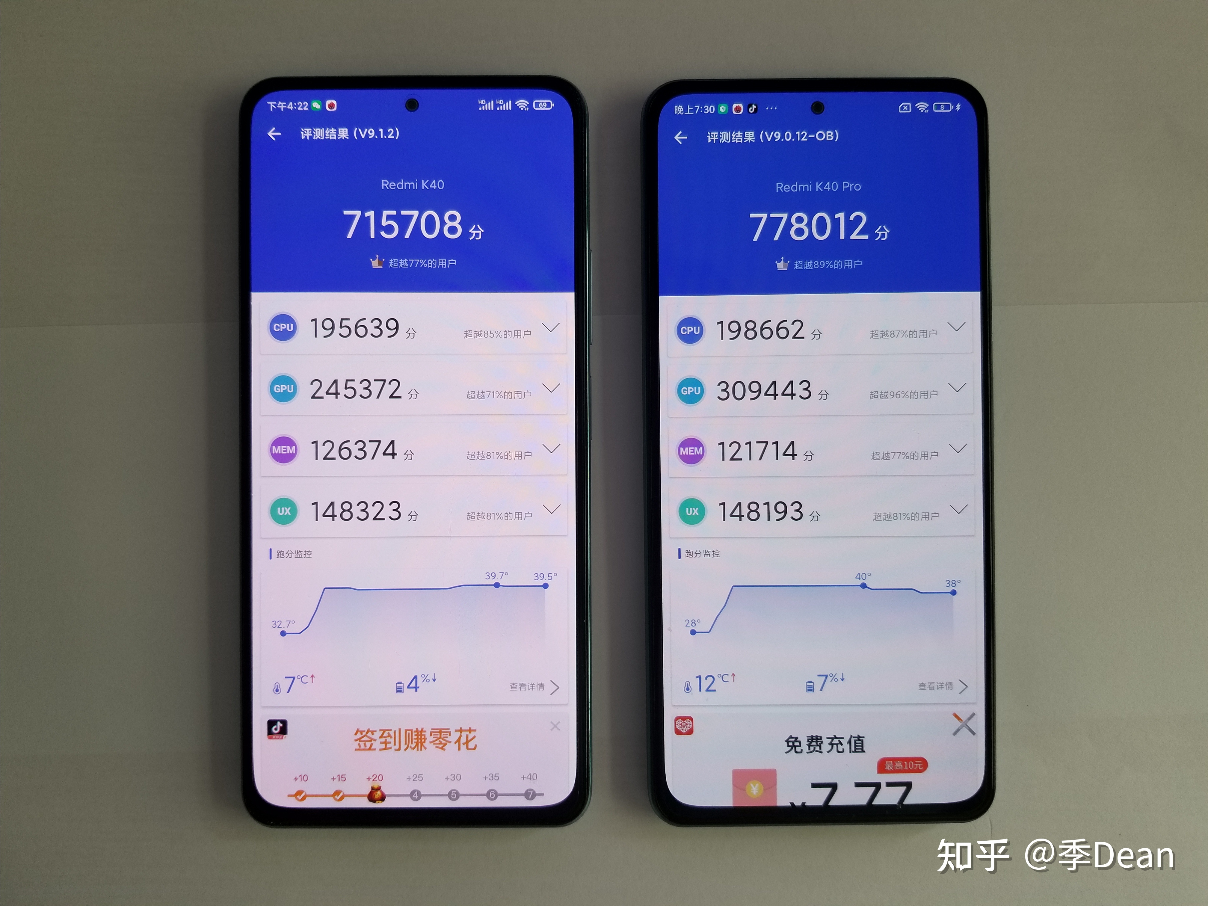 而红米k40pro这边分别为862分和3287分