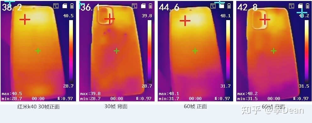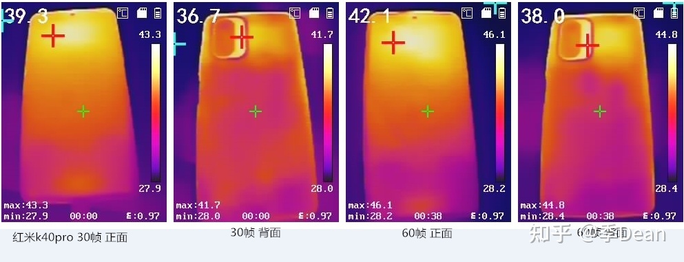 红米k40 Pro正面最高43.8,背面42.9